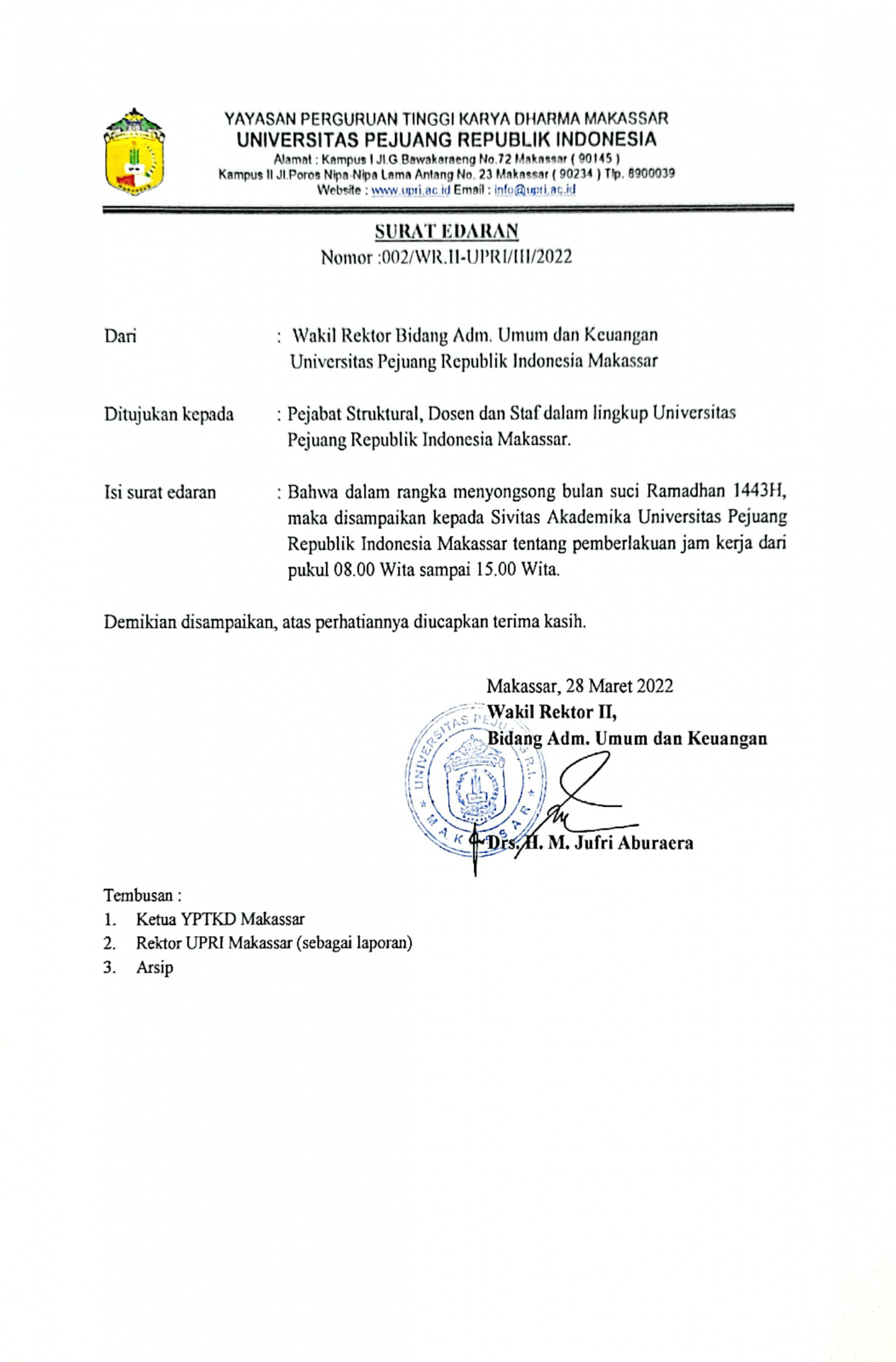 Yayasan Perguruan Tinggi Karya Dharma (YPTKD) Makassar, menggelar penyerahan Surat Keputusan (SK) Menteri Pendidikan dan Kebudayaan Riset dan Teknologi (Mendikbudristek) Nomor 793/E/O/22 tentang izin pembukaan Program Studi (Prodi) Keselamatan dan